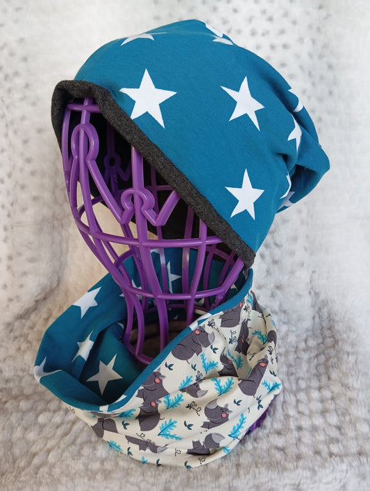 Wendebeanie & Loopschal-Set aus Jersey